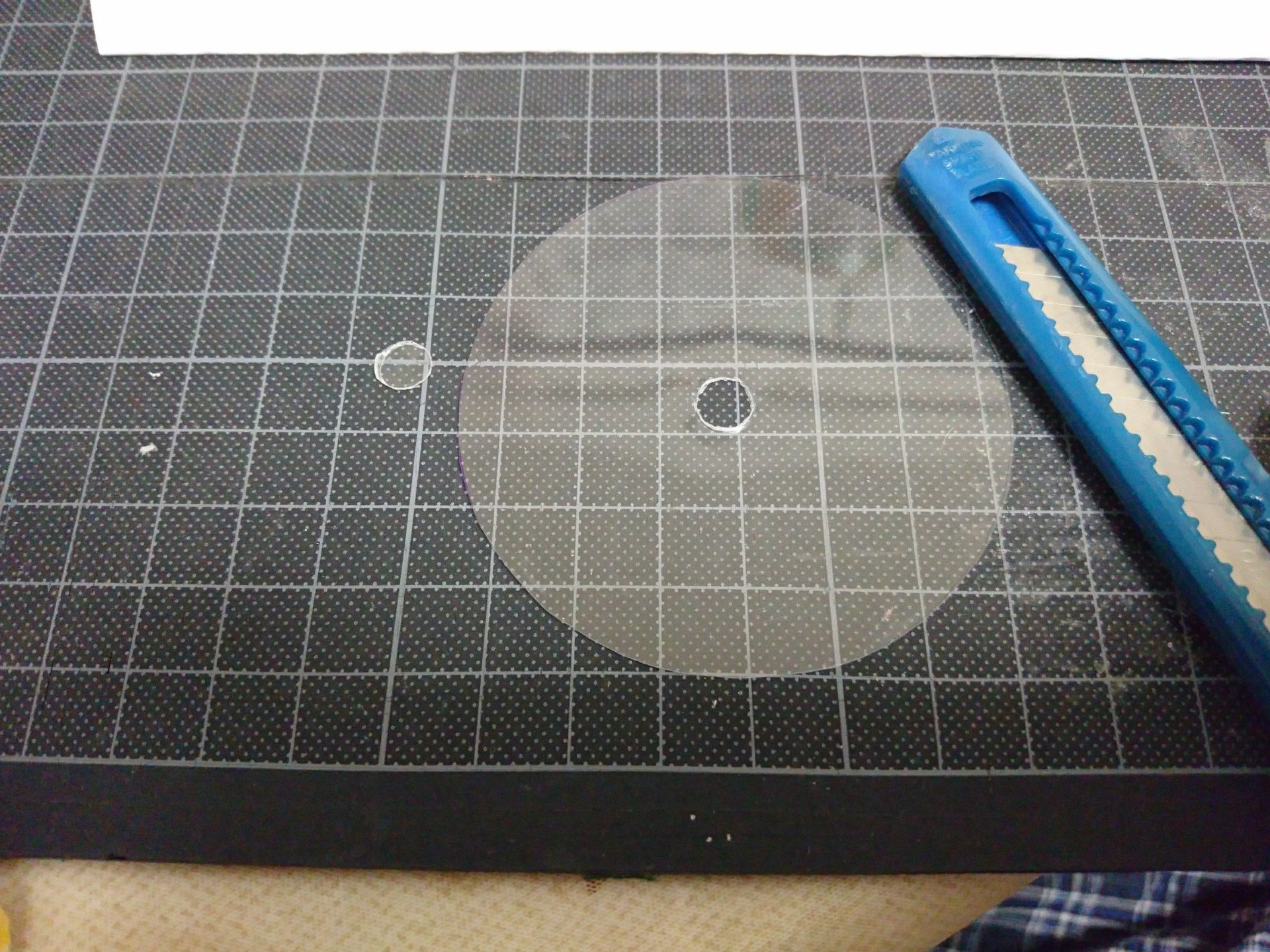次は穴を開けます。ポンチを使うと楽ですが、切れが悪く最終的にはカッターを使いました。