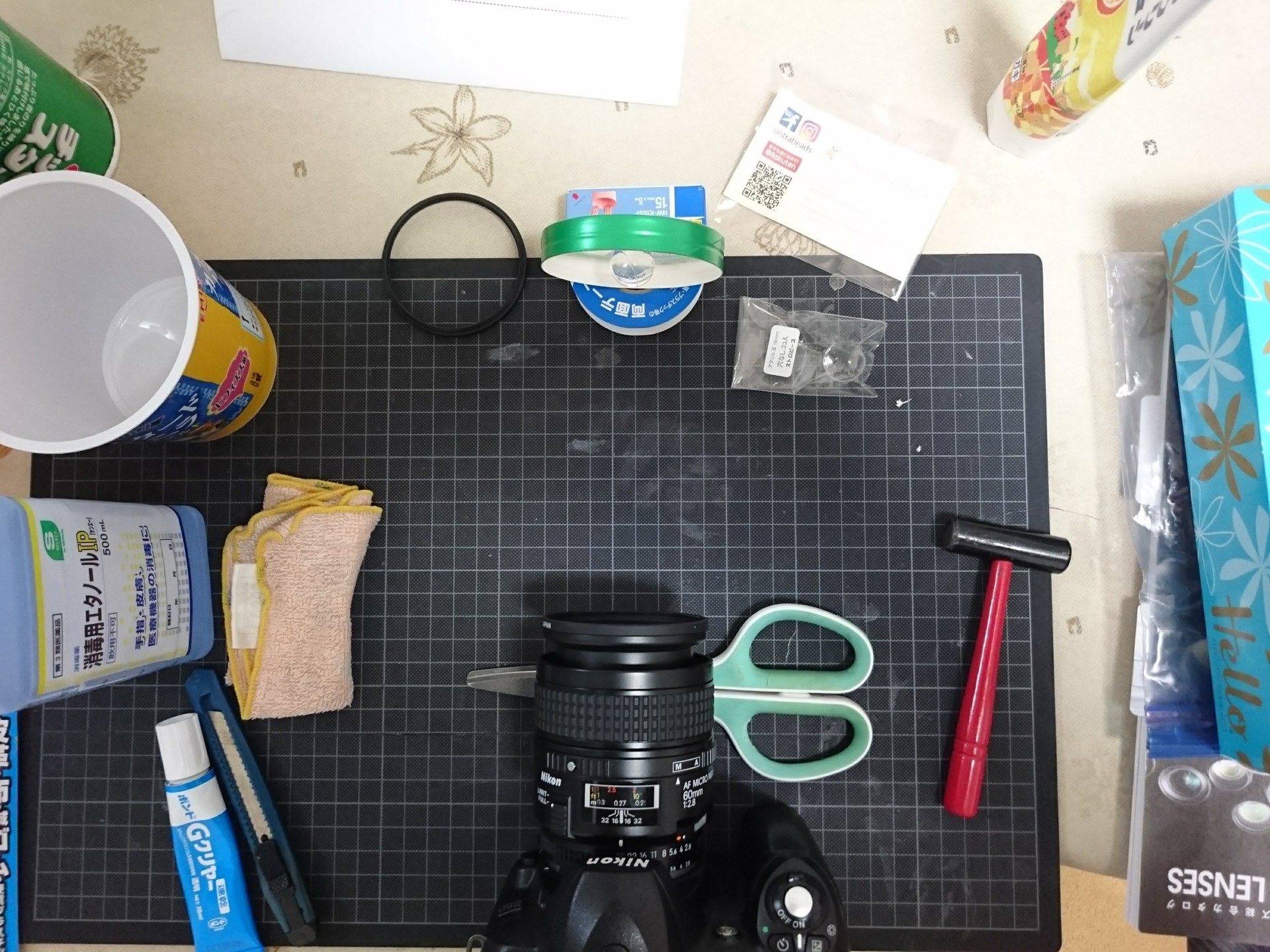 接写可能なレンズ。NikonだとMICRO NIKKORが該当する。近い距離でピンとが合う必要があり、手持ちの他のレンズでは不可能だった。これが結構高く付くかも(汗)